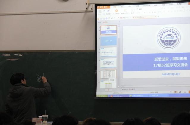 为进一步端正学风,营造良好的学习氛围,3月14日晚上7:00,机电工程学院17机52班于学院101C教室召开学风建设主题班会。班主任丁永剑老师,17机52班全体同学参加了本次班会,班会由班长朱亮主持。班会伊始,班长朱亮以先进班级申报材料为基础,以PPT展现的形式带领大家回顾了班级一年多来的成长变化,他希望大家团结一致,在接下来的时光里共同进步。接着,丁老师作了反思过去,展望未来的主题分享,他通过对先进班级申报材料一一对比分析,指出班级在班风学风建设上存在的问题,提醒大家要清晰面对问题,敢于剖析问题。讲解中,丁老师从班级每个学期挂科总门次、每学期挂科多于2门人次、挂科严重预警生、班级三学期挂科总情况四个方面剖析了班级在班风学风上存在的学风氛围不浓厚、挂科整体情况严重、挂科预警生较多、学习先进生较少的问题。结合“清考”制度取消、毕业与结业管理、学业预警制度推进、大三课程安排,丁老师强调了主业学习的重要性,他告诫同学们清楚学业要求,做好学业规划,不要让今天的无为为明天埋下苦果。然后,丁老师与大家一起分析了历年考研报考人数变化和2015级学生考研情况,通过对部分高校机械类考研学生榜样的分享,他建议大家要跳出师大看师大,拓展视野,做好规划,一步一个脚印走好每一阶段的路。主题班会上,丁老师就班级上学期的课堂考勤、宿舍达标情况情况进行了通报,并结合学期学生工作重点强调了课堂纪律、宿舍卫生、班级建设、生涯规划、校园生活等事项。