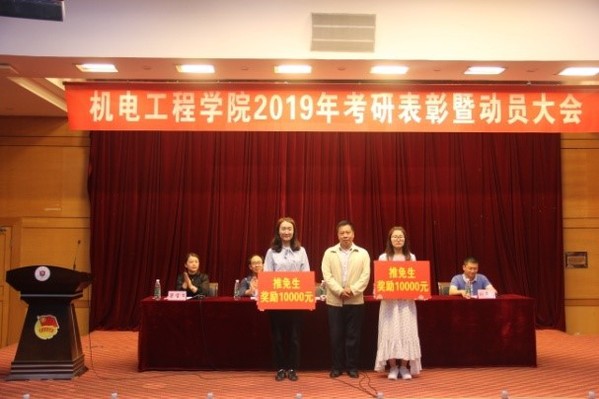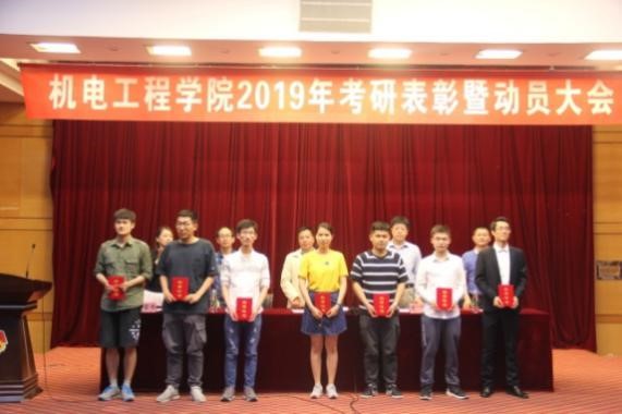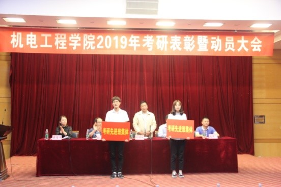 会议伊始,刘文艺副院长代表学院宣读《机电工程学院本科考验奖励办法》,马军副院长宣读表彰文件,在热烈的掌声中,学院领导依次为41名考取研究生的同学和获得“考研组织奖”以及荣获“考研先进集体”的班级颁发荣誉证书。随后,张亮副院长为同学们作了考研政策解读和考研动员,他从考研重要性、学科学位点介绍、2020年研究生招生简章、2020年考研政策解读、中俄合作硕士研究生教育项目、机电工程学院优秀研究生简介六个方面作详细解读。鼓励同学们考研,并强调科研工作的开展在考研时所发挥的重要性。随后,8名具有代表性的考研优秀学子分享了自己的考研经验,推免生代表薄晓楠学姐强调学习的重要性、研支团成员赵贞贞学姐分享了自己是如何走上研支团这条道路,还有其他考研代表分别从院校选择、公共课学习、专业课复习、应对复试及考研心态调试等多方面多角度详细说明,并鼓励学弟学妹们坚定目标,持之以恒,在考研路上走出自己的色彩。