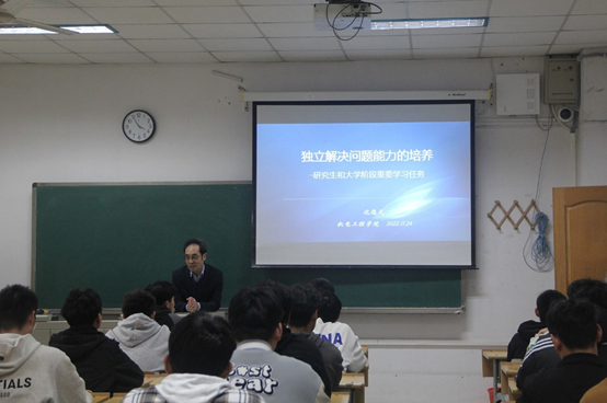 2023年11月24日下午,机电工程学院在12号楼102C教室组织开展了关工委讲师团专题讲座。学院特别邀请关工委讲师团、物理与电子工程学院关工委成员沈德元教授,面向2022级新生讲授《独立解决问题能力的培养》专题讲座。