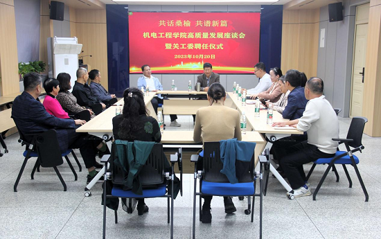机电工程学院于10月20日开展了“共话桑榆 共谱新篇”高质量发展座谈会暨关工委聘任仪式,学院领导班子全体成员、院工会主席及8位退休教师参加了本次活动。