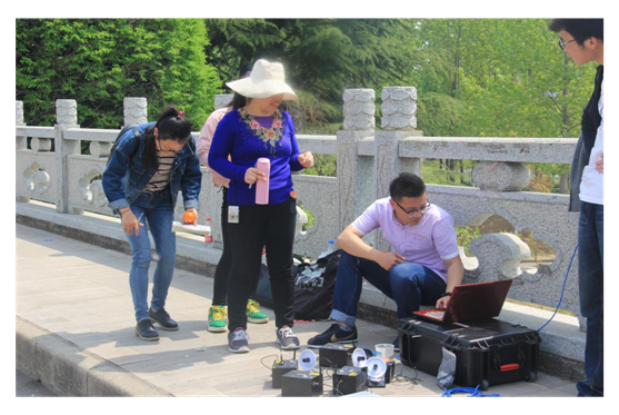 根据《教育部关于批准实施“十二五”期间“高等学校本科教学质量与教学改革工程”建设项目的通知》的精神和《关于组建大学生创新创业团队的通知》的精神,2016年4月9日下午3点,在机电工程学院教授李顺才、副教授蒋红旗和工程师金诚带领下,由本科生闫镜宇和喻秋主持的国家级科研项目《车载和风载作用下徐州和平大桥结构振动的监测技术研究》的全体5名成员、研究生吴明明和本科生梁莉和袁冠雷在徐州和平大桥进行了斜拉索索力和桥梁基频数据采集试验,测量过程中,小组队员分工明确、积极合作,在3位老师的指导下分别在桥梁不同位置测量了基频和斜拉索索力,顺利地完成了桥梁相关数据采集工作,虽然测量工作结束后已经是傍晚6.30,但是老师们不辞辛苦,队员们也积极协助测量工作,又于次日4月10日上午9点在江苏师范大学玉泉桥上顺利进行桥梁模态监测和桥梁基频数据采集工作,此次活动围绕“实施大学生创新创业训练计划,促进高等学校转变教育思想观念,改革人才培养模式,强化创新创业能力训练,增强高校学生的创新能力和在创新基础上的创业能力,培养适应创新型国家建设需要的高水平创新人才”的要求,切实可行的给全院所有创新项目团队起到了模范带头作用。