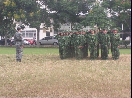 首先由2010级学生进行军训汇报表演。教官向主席台首长报告,请求检阅。随着韩院长命令:“开始”,大会由此正式开始。教官统一整理队伍,进行拉歌表演。激昂的歌声一遍一遍响彻机电工程学院头顶的蓝天。接着教官陪同韩院长检阅方队,韩院长代表院领导大声说道:“同学们好!同学们辛苦了!”,学生们热情的回复:“首长好!为人民服务!”。接着进行列队表演,由四个方正分别表演跑步、起步、正步、敬礼等等。最后军体拳表演,每个方阵表演的异常精彩、朝气磅礴,为领导们展现出机电工程学院2010级新生的活力。
