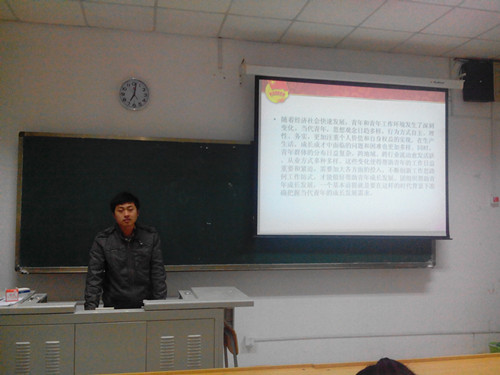 接下来是李林超为大家讲解了“如何通过实践增长青年团员的素质?”青年团员的素质发展一直是校、院团委关心的主要方面,对此李林超同学给出了他的独到见解,并且提出青年团员应该具有历史责任感,刻苦学习的习惯,以及正确的政治思想等方面的重要素质。最后,由团支书吴娜同学为大家说明了心理健康教育对于青年团员身心发展的重要作用。身心的健康是作为一名合格青年团员的基本条件,作为团干是一个团支部的主心骨,应当担负起为周围的同学们排忧解难的重要责任,只有这样才能让团委发展的更好,更和谐。