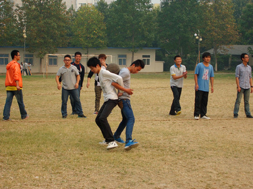 为丰富同学们的日常生活,10月20日下午1:30,我院体育部于工学院前足球场为大一新生举行了一场别开生面的趣味运动会。为增加活动的趣味性,体育部还特别邀请了学生会主席与各部长一同参与活动。