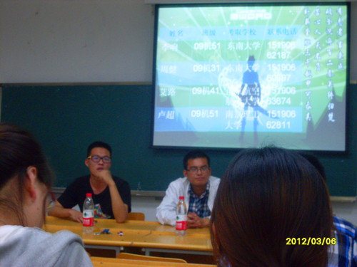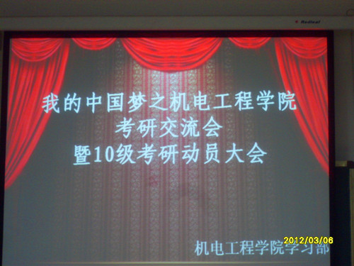 大会首先由09级考研成功的学长学姐给大家讲述自己的考研经历,从决定考研开始到准备复习、学校选择、备考过程中的复习方法及侧重点、时间安排等。几位学长学姐都强调了考研过程中要坚持,善于利用假期时间,复习时要有自己的方法,同时要调整好心态。对于考研资料的准备,根据各个学校不同专业的要求进行详尽的准备,复习主要围绕历年的真题、大纲要求展开,注重专业课。针对不同的考研情况,他们向大家推荐了基本有效的书籍,和做题要达到的水平。接下来,由同学们向他们提出自己的考验疑问,四位分别围绕自己的经验进行了详细的解答,使同学们对考研过程有了更深的了解,对学校的选择等开始有了自己的想法。最后,大家对下一届的考研同学送上了忠诚的祝福,给他们信心与力量!