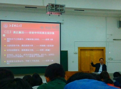 张主任以“廉洁”为话题,带领同学们展开了对十八届四中全会精神尤其是依法治国相关问题的深入学习。讲座开始,张主任以同学们熟悉的《钢铁是怎样炼成的》中最著名的一段话语导入,引发同学们对该如何度过无悔人生的思考。接着,张主任通过“马加爵”案、“药家鑫”案等一系列大学生违法乱纪案例,引导同学们在日常生活学习中要树立法治意识和自律意识;通过十八大以来党和国家的反腐成果,引导同学们积极关心国家和社会问题,树立廉洁思想和监督意识。张主任的讲座引经据典,又深入浅出,他通过同学们熟知的社会案例和有趣的历史典故将抽象的理论知识化为浅显易懂的道理,取得了良好的学习效果。