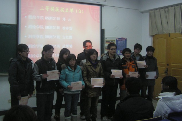 机电工程学院、电气工程及其自动化学院、测绘学院的学生会主席,此次征文活动的部门主要负责人均出席了此次颁奖仪式。首先由三院的学生会主席致词,对所有的获奖同学表示祝贺,并共同希望以此次活动为契机,加强工学院三个学院间的交流与合作,增强工学院的整体凝聚力。接下来便对此次征文活动中获奖的同学进行颁奖,台下响起阵阵热烈的掌声。