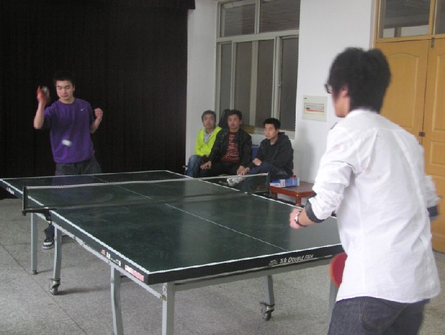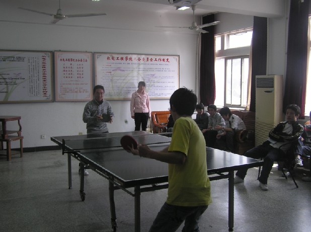 首先上场的是08机42与08机41,熟练的打球技术,轻盈的步伐,不时地赢来全场阵阵的掌声。来回被击打的乒乓球似划过天际一道道优美的弧线。接下来上场的是09级的同学们,他们以饱满的热情充分展示了大一学子的风采。秉着“友谊第一,比赛第二”的原则,同学们都从本次比赛中获得了快乐。