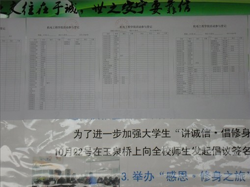 为调动同学们参加学院各种活动的积极性,11月24日下午,机电工程工程学院在12#楼一楼大厅公布活动参与登记表加分情况。
