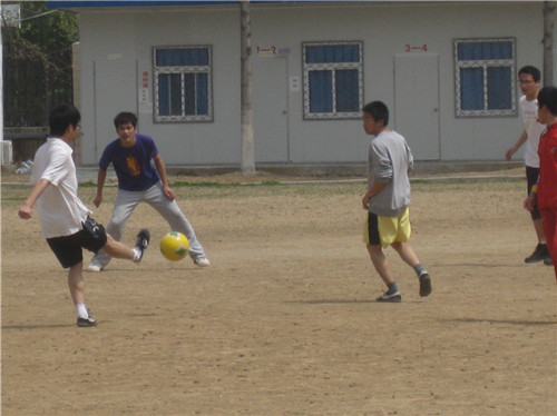 49日下午1240,在田家炳工学院前的运动场上进行了0951班和52班之间的比赛。比赛一开始双方就努力抓住机会向对方展开猛烈的进攻。细腻的脚法、默契的配合、缜密的队形部署使比赛很快进入了白热化。在比赛开始15分钟左右,51班队员单刀直入,率先攻破对方球门。接下来的比赛逐渐进入了僵持阶段,虽然双方都进行了更加猛烈的进攻,但都没能攻破对方球门。最后,51班以10战胜52班,获得了本场比赛的胜利。