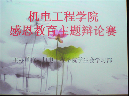 为积极相应以“崇德端行知荣辱,文明修身树新风”为主题的大学生文明修身工程,4月24日晚上7点整,机电工程学院在12#楼103C举行了“感恩教育”主题辩论赛。学生会主席团担任了此次辩论赛的评委。