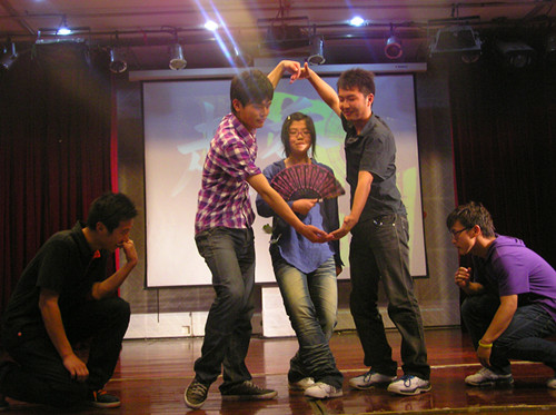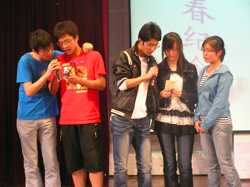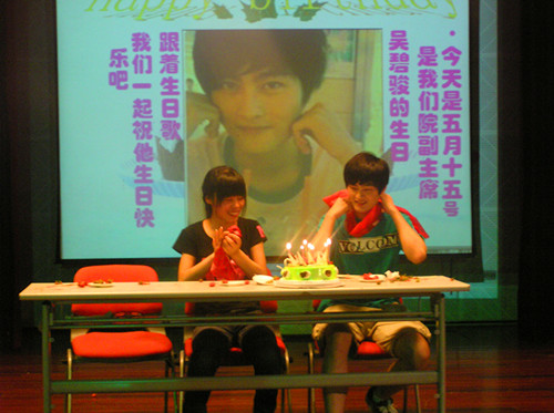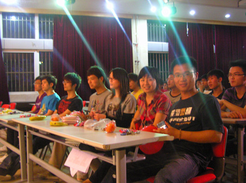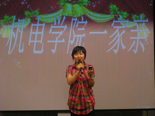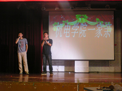 晚上7:00整,杨翠老师宣布晚会正式开始。首先是D.F.F街舞社带来了一段给力街舞,引来同学们阵阵欢呼。接着,文艺部的歌曲串烧, 女生部的《童话》,宣传部的《一生有你》,生活部的《青春纪念册》,体育部的T台走秀,新闻部的舞蹈《花蝴蝶》,学习部的朗诵,外联部的《贵妃醉酒》,秘书处的魔术表演接踵而至。其中穿插的小游戏更是给力,尤其是《猪八戒背媳妇》使全场气氛high到极点。而在“吃草莓”的游戏中,为学生会副主席吴碧骏和体育部副部长郭艺庆祝生日的心意,更是展现了此次晚会的主题——“机电学院一家亲”。然后,学生会主席周浩和团委副书记张德义合唱一首《知足》,表达了主席在学生会工作了三年的感受,杨翠老师应同学们的要求吟唱一曲《红豆》,更是为晚会锦上添花。最终,本次主题晚会在同学们的欢声笑语声中圆满结束。