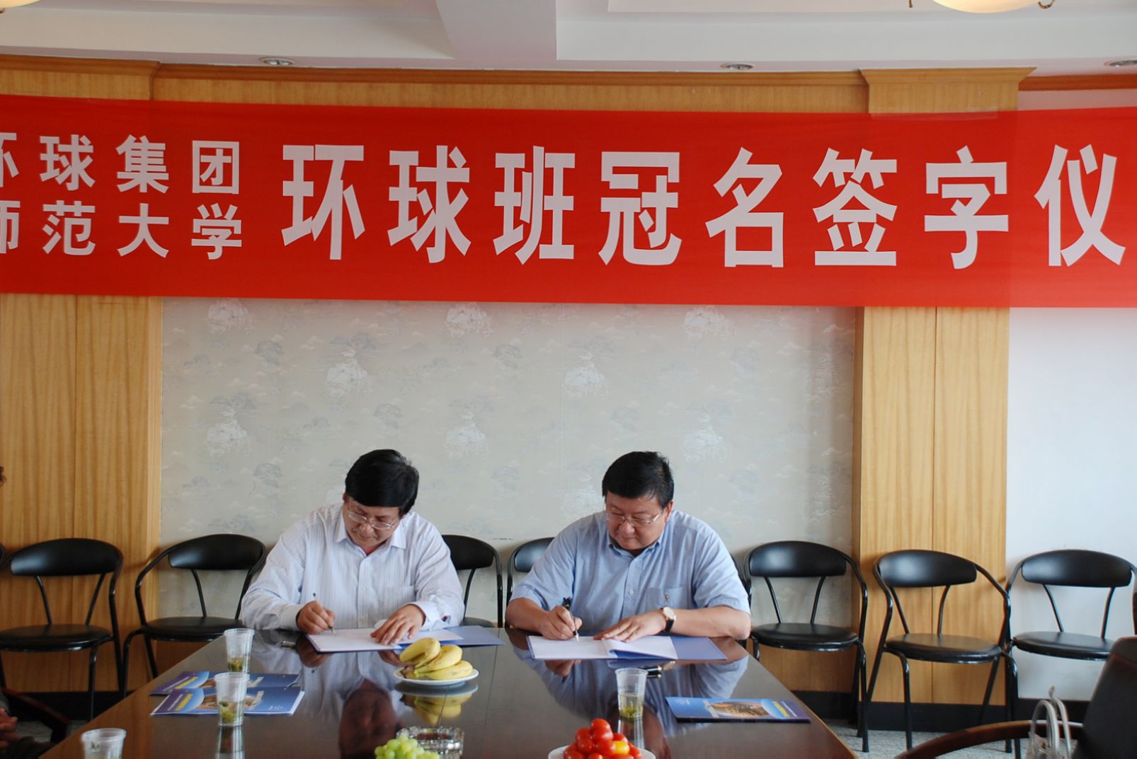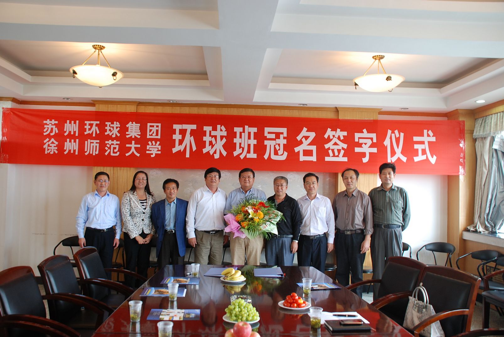 9月29日下午,徐州师范大学与苏州环球集团“环球班”冠名签字仪式在机电工程学院会议室举行,参加签字仪式的双方代表主要有徐州师范大学教务处陈洪处长,教务处伍斌副处长,机电工程学院党委施春华书记,韩继光院长,王柏华副院长,邢邦圣副院长,苏州环球集团董事长黄伟达先生,副总经理汪浩先生,物电学院刘莹副院长。机电学院院长韩继光教授主持本次签字仪式。