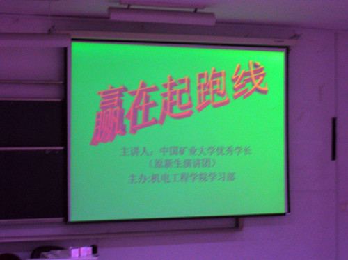 为促进我院学风建设工作,10月13日晚上7点,机电工程学院学生会学习部邀请中国矿业大学原新生演讲团讲师王旗在17#100A举办了一场精彩的励志演讲。
