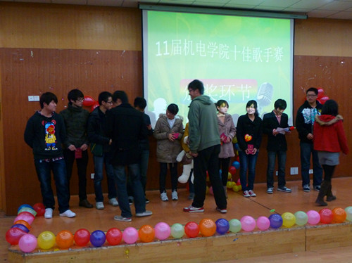 为加强我院学风建设,促进我院学生全面发展并营造良好的文艺氛围, 2011年11月18日晚上7点,我院在17#200B举行了2011年度“学风建设”系列活动之“十佳”歌手比赛。我院学生会主席团及各部部长和徐州师范大学大学生通讯社相关负责人作为嘉宾评委观看了本场比赛。