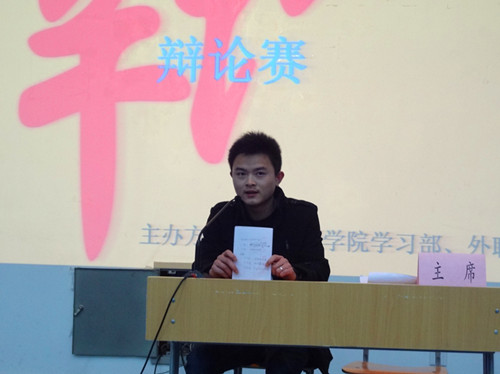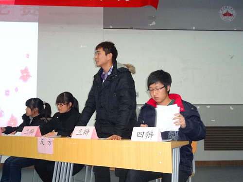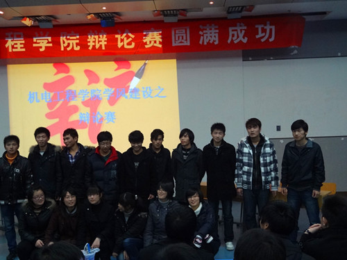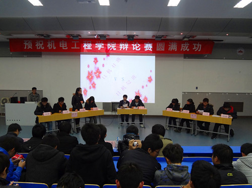 为迎合我校“学风建设”活动,营造优良学风,并为我院大一新生展示出众才华,增进班级交流创造舞台,12月1日晚上7点,我院学生会学习部和外联部在8#100D联合举办了“机电工程学院学风建设活动之‘风云雄辩天下’辩论赛”。我院学生会主席团及部分部门部长担任了本次辩论赛的评委。