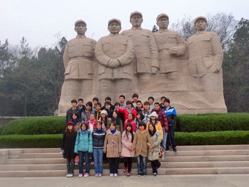 上午9点,由10级的三位学长带领,31班全体同学乘坐公交车前往徐州淮海战役纪念塔。同学们先参观了淮海战役纪念塔,瞻仰了在淮海战役中牺牲的战士的名单及关于此次战役的浮雕。随后,同学们参观了淮海战役中使用过的大炮和飞机等武器。最后,大家排队进入了淮海战役纪念馆,纪念馆中陈列了许多关于抗战时期的物品,还有许多领导人物生动逼真的蜡像。同学们非常认真的参观,感受着那种肃穆的气氛。整个过程,同学们兴高采烈合影留恋。