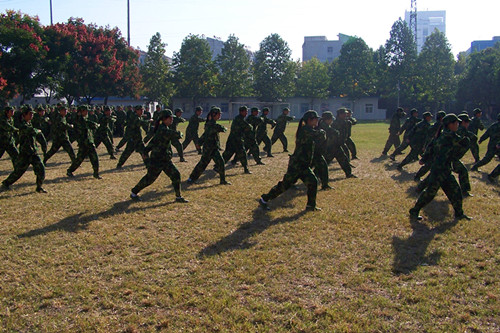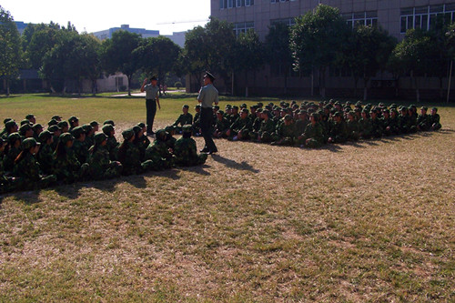 虽入秋已久,但徐州的天气依旧骄阳似火,火辣燎人。同学们为了最后的胜利,在严酷的训练中坚持着。他们汗流浃背,但却丝毫没有放弃的意思。为保证军训会演时同学们的动作迅速一致,教官的要求也变得更加严格。转体时靠脚整齐的声音,奇步走擦裤缝的声音,恰当的步调,跑步立定时动作的规范,以及正步抬脚的高度,落地声音的一致,这些细节都被周而复始地演练。