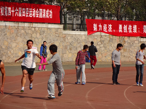 随着一声枪响,男子400米预赛拉开了帷幕,四百米赛程并不长,但其最后一百米的反超同样扣人心弦。我院健儿虽没有获得很好的名次,但他们的奋力拼搏同样值得我们尊敬。紧接着男女子1500米预决赛,我院运动员秦岭毫不放弃,最终取得小组第二的好成绩。最后的4*100接力将全场气氛引向高潮,我院男子组第一棒稍显落后,虽然他们奋力追赶,但他们还是与第一失之交臂。