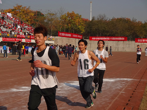 11月1日上午8点,我校第四十六届田径运动会进入了第二日的赛程。一大早,看台上已经坐满了前来加油的同学。刺骨寒风阻挡不住他们加油的欲望,也熄灭不了他们为我院健儿呐喊的热情。操场上,运动员们也早已做好了准备,跃跃欲试。