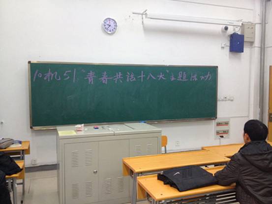 为庆祝中华人民共和国第十八次全国人民代表大会的召开,加强同学们对十八大的了解,端正同学们的学习态度,听从党的领导,机电工程学院10机51班于12月10日上午9:30在工学院104D举办了“青春共话十八大”主题班会。10机51班团支部书记王连主持了这次会议。