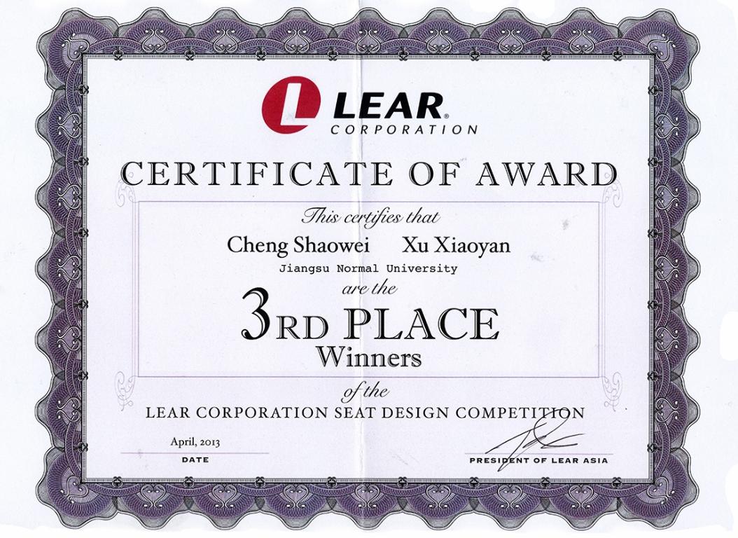 由我校工业设计专业程少伟(研究生)与徐晓燕(本科生)同学组成的参赛队伍(指导教师宋端树)成功入围决赛,通过现场宣讲设计作品及评委会评审(大赛评委为世界各著名汽车设计总监),最终我参赛队伍设计的概念汽车《Benz Flying in 2020》获得提名“最佳外观设计奖”与“中国传统文化设计特别奖”、汽车座椅《簪》获得铜奖(金银铜奖各1名)。这是继2011年获得此大赛“最后欢迎设计奖”之后的又一佳绩,也是对我校工业设计专业教学水平、学生设计实践能力的一种充分肯定。