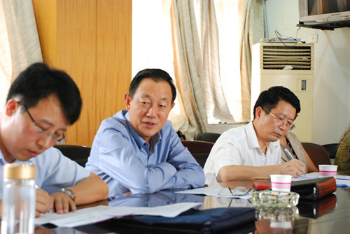 调研组听取了院党委书记施春华同志关于学院开展党的群众路线教育实践活动情况的汇报。施书记就学院教育实践活动组织机构的建立、动员会的召开、学习教育听取意见环节开展的各项工作等向调研组作了汇报。与会学院领导和老师从教学、科研、实验室建设管理、教师身心健康、办公条件等方面提出了意见和建议。