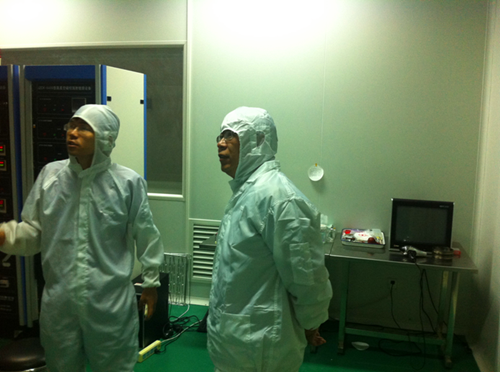 韩继光教授参观了武汉光电国家实验室成果展、光电子微纳制造工艺平台、光电测试中心等,并与光电材料与微纳制造部部长史铁林教授、研究员廖广兰教授进行交流。
