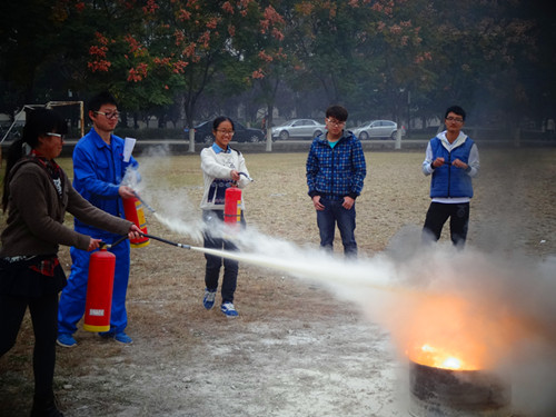 首先,各班按次序排好队,在老师的组织下,同学们迅速进入消防灭火演练场地,面前整齐的摆放着灭火器,接下来,李科长耐心地给同学们讲解了灭火器的使用方法,以及遇到突发火灾同学们所要掌握的应急处理办法与逃生技巧,同时结合实例,为同学们再现了一幕幕校园火灾情景,后来,操场上点起了两个火堆,同学们亲自拿起灭火器,准确的操作,一个个火堆纷纷被扑灭,邵老师也参与其中,和同学们一同参加消防灭火演练。