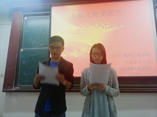 为挖掘同学们的创新思维及凝聚力,展示同学们VCR设计及制作方面的才能,丰富同学们的课余文化生活,增强各院之间的交流与联系,4月27日下午,机电学院联合教科学院、计科学院、电气学院、测绘学院在贾汪校区举办了五院文化交流节之VCR设计大赛。担任大赛的评委有各院的学生会主要学生干部,以及来自各班级的大众评审。