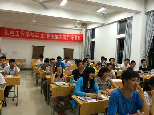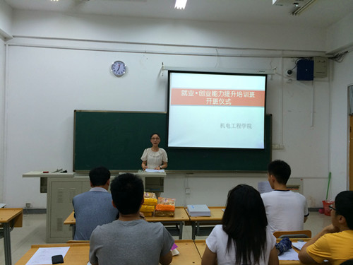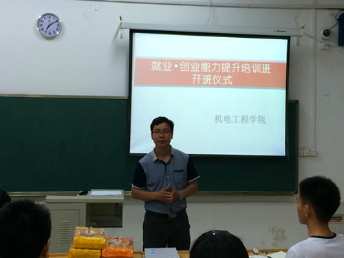 为增强我院学生就业创业知识,提升就业创业能力,以创业带动就业,6月10日晚七点,在学校领导的大力支持下,由校学工处与机电工程学院联合举办的首期“就业•创业能力提升培训班”举行了开班仪式。校大学生创业导师高连峰老师、院辅导员朱悦老师以及首期培训班的50名学员参加了开班仪式。