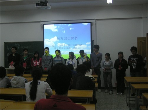 会议开始,由英语研学社社长张剑颁发部长聘书,同时忠心祝愿新任社长及各部部长带领下,大家能够将英语研学社越办越好。接着社长徐乐各部部长纷纷上台作了简单的自我介绍,并对所在部门的职责主要活动进行简要叙述。然后由社长代表研学社新老干部发言,他强调了社团纪律的重要性,同时还表扬了大一新生的积极配合。徐社长还针对同学们提出的问题进行详细的解答。最后,会议在掌声中圆满结束。