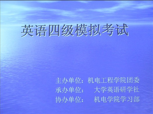 为了让同学们能够进一步充分了解到英语四级考试的形式和题型,在院团委和英语研学社及学生会的大力协作下,我院于1123日晚7点,在12#101C,102C,103C举行英语四级模拟考试。