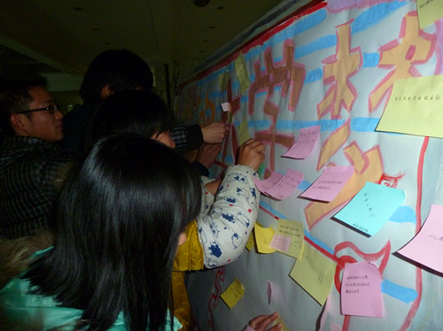 在活动一开始,学习部为每位同学分发了彩色贴纸,要求每位同学们将自己的梦想写在贴纸上,并将其作为今后学习生活的目标。经过细心思索,同学们认真写下了自己的大学梦。随后,同学们小心翼翼地握着贴纸,慢慢地将其粘贴在工学院大厅的板报上。每位同学都面带微笑,但他们的脸上也都有一丝庄重。不一会儿,小小的板报就被彩纸贴满了。板报上所粘贴的不仅仅是一张张贴纸,更是同学们伟大的梦想。有些同学希望逢考必过,也有同学期望获得奖学金,还有同学想要广交朋友……经过此次活动,同学们都在心里默默种下了梦想的种子。今后的他们一定会加倍拼搏,努力让自己的梦想早日实现!