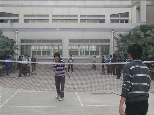 1124日下午,机电工程学院在12#楼后羽毛球场地举行新生羽毛球赛。
