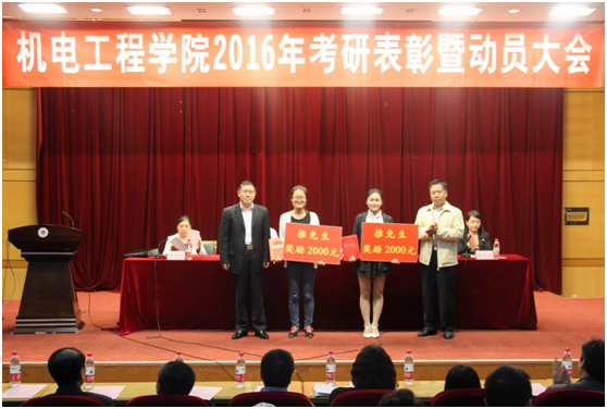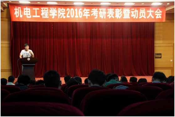 会上,李院长首先代表学院宣读了《关于表彰2016年“考研组织奖”和“考研优秀学子”的决定》。在热烈的掌声中,学院领导依次为12机31班、12机41班及23名考取研究生的同学颁发荣誉证书。随后,邢院长为大家作了考研解读和考研动员,其中还特别强调,学院为进一步推动考研工作,专门制定出台了《机电工程学院本科生考研奖励办法》,他鼓励2013级同学积极选择考研,创造精彩人生,同时在择校选择上,欢迎大家优先考虑我校我院。会上还对我校与俄罗斯圣彼得堡彼得大帝理工大学合作办学免试招收机械工程研究生工作做了专题宣讲。