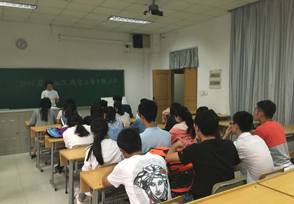 会上,马老师首先向2016届毕业生们宣读了《2016年生源地助学贷款还款指南》的主要内容,向同学们介绍了还款规则和流程,并提到了几个典型案例警示,重点强调了违约行为带来的后果,要求同学们把诚信作为做人行事的准则,对任何事、任何人都要诚实守信。