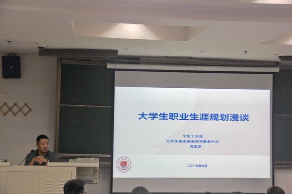 为了使大一新生尽早适应大学生活,对大学生活作出合理规划。9月12日下午2:30,机电工程学院在8#J104举办“职业生涯规划”新生入学教育专题讲座,本次讲座邀请江苏师范大学学生工作处周显洋副处长主讲,2019级全体新生参与了此次讲座。讲座由辅导员刘萌老师主持。