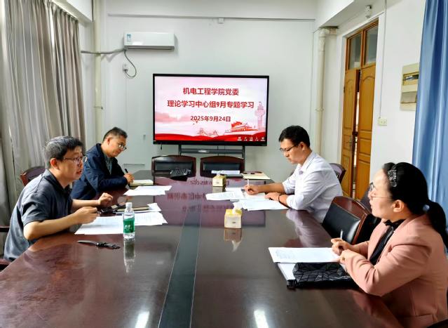 9月24日上午,机电工程学院党委理论学习中心组开展9月专题学习会,院党委理论学习中心组全体成员参会,会议由院党委书记姜南主持。