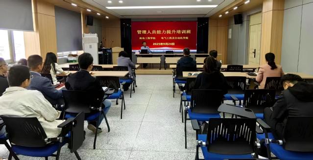 9月24日下午,机电工程学院、电气工程及自动化学院联合举办了管理干部能力提升培训班,会议邀请潘永亮副教授做专题报告。学院全体管理人员、系主任、支部书记参加了培训,会议由机电学院党委书记姜南主持。