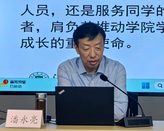 潘永亮教授以“融情怀于管理 以作风强服务”为主题,结合自己在工作中的体会,从学院发展、服务师生、能力自信等方面阐述了管理人员工作的动力源泉,结合工作实例剖析探讨了学院管理工作好作风的路径和细节。潘教授倡导大家,作为一名优秀的管理人员,要善于将情怀与作风相融合,日复一日的坚守,做“有温度的服务者”,当“有担当的行政人”。