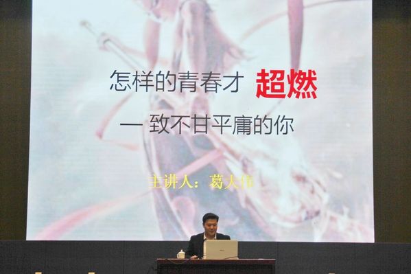 葛大伟书记以“怎样的青春才超燃—致不甘平庸的你”为主题,以多部电影和新闻大事为切入点对超燃的青春进行了详细的解读,并告诉同学们要打造自己的“不可替代性”。接着,葛书记重点介绍了如何才能“超燃”,根据实例强调了创新的重要性,并且以自己的学习经历为初入点,讲解了学术创新的方法,幽默风趣地向同学们解释了四个关键词:超燃、创新、创业、大学,分享了自己学术创新的四句话,并向同学们介绍了江苏师范大学的师资、资源、环境,全面打开了同学们的创新思路。最后,葛书记用诗表达自己对同学们的祝福,希望19级新生在大学生活中保持白雪一样纯洁的心地,不改如诗的少年情怀,无惧孤筏重洋的旅程,拥有青春无悔的未来!