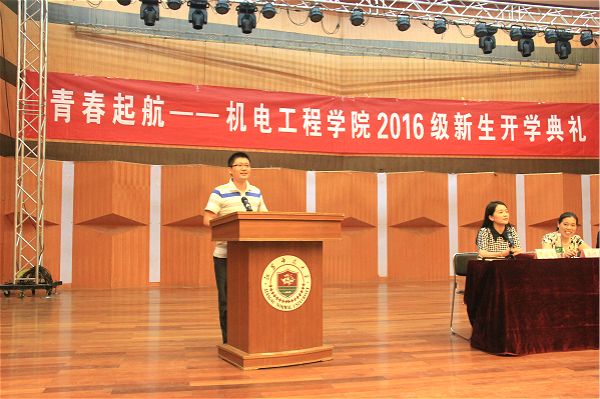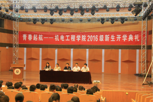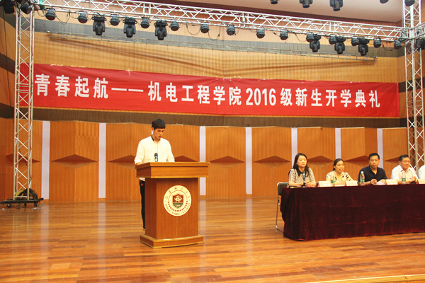 9月14日下午2:30,机电工程学院2016级新生开学典礼暨师生见面会在马可音乐厅隆重举行。院党委书记刘福义、院长邢邦圣、党委副书记梁宝文、副院长李顺才、马军、各系主任和书记、全体行政人员及157名本科新生参加会议。会议由梁宝文主持。