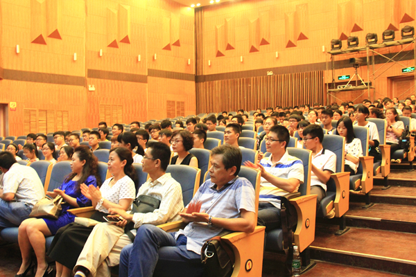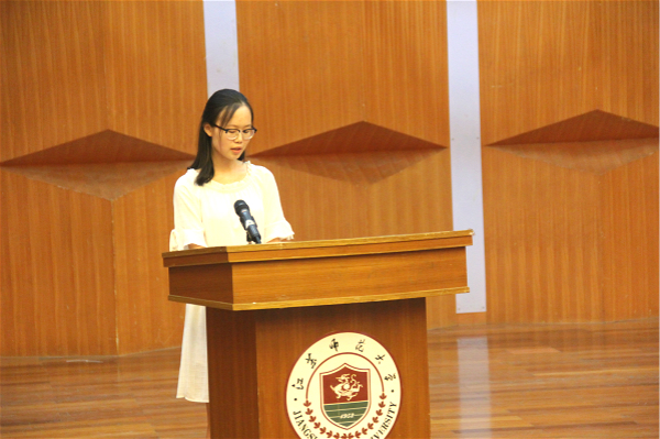 随后,教师代表刘文艺副教授发言。刘教授以自己本科、硕士、博士、海外留学的求学经历为例,给同学们提出三点建议:善于思考,科学规划自己四年大学;积极参加专业性学科竞赛和创新活动;存宽容包容之心,求同存异。接下来2014级聂宇扬、2016级崔杰同学分别作为老生、新生代表发言。聂宇扬同学以自身大学生活心得和经验分享了如何度过充实的大学生活,崔杰同学就自己刚来大学的体验和对未来四年的畅想谈了自己的感悟。