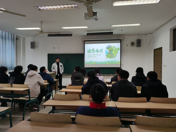 活动伊始,团支书周扬介绍了今年“世界水日”的主题与“中国水周”活动主题,他从为什么要珍惜地下水、水资源现状、我们能做什么三个方面做了微团课讲解并号召同学们养成节约用水的好习惯。活动过程中,同学们观看了“中国水周”宣传片,使同学们进一步了解水资源相关知识及我国当前水资源匮乏的现状。