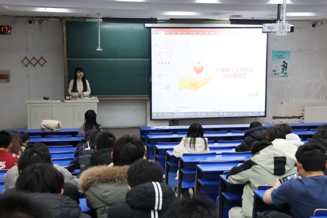 首先,赵老师系统阐述了“宿舍—班级—学院—学校”四级预警工作体系的运行机制,明确了心理骨干的核心职责与工作伦理。她特别指出,宿舍心理气象员作为预警网络的基层关键力量,是守护同学生心理安全的“首道防线”,应切实承担起观察员、联络员、宣传员和支持者的四重角色。