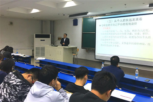 会上,邢院长重点针对2017届毕业生的考研工作进行安排和部署,从考研的必要性、学科学位信息、考研相关政策以及中俄合作硕士培养项目等五个方面与大家做了充分的交流。他倡导同学们认清当前形势,客观了解自身情况,合理规划发展出路。同时,结合我院2017年招生简章和中俄合作办学,邢院长做了重点解读,欢迎同学们积极报考我院。