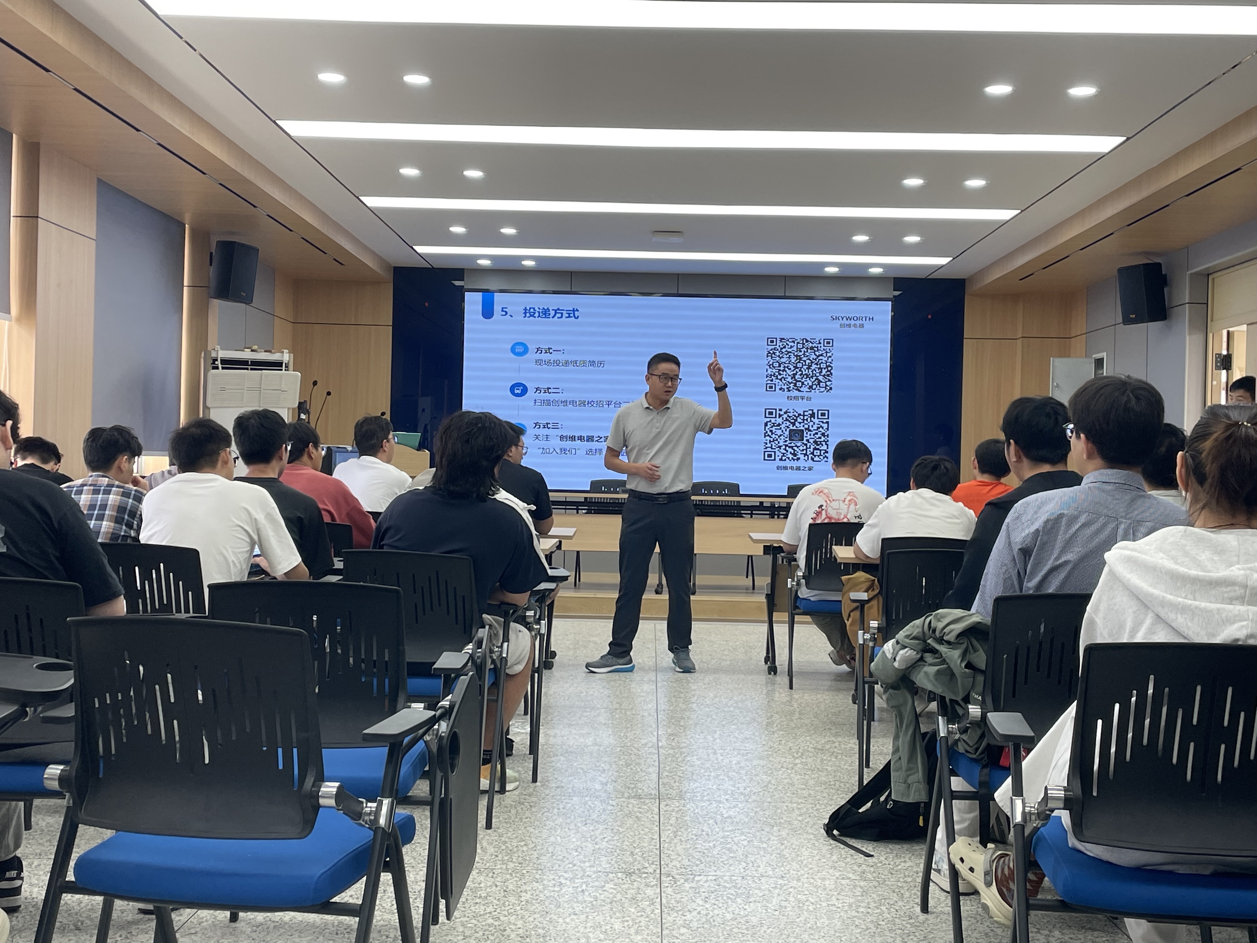 活动伊始,通过企业宣传视频,生动展现了创维电器的发展历程、核心理念与未来愿景,让在场学生快速建立对企业的初步认知。随后,公司相关负责人详细解读了企业发展战略、核心业务布局及行业发展优势,全面呈现企业发展潜力。紧接着,人力资源主管则聚焦同学们关注的求职发展问题,详细介绍了工作环境、招聘流程、薪酬福利体系以及员工成长培养计划,为毕业生明晰职业方向提供了有力参考。宣讲会尾声设置了互动问答环节。应届毕业生围绕岗位要求、职业路径、专业匹配等踊跃提问,企业代表逐一细致解答,现场交流热烈,进一步增进了企业与学生之间的相互了解。