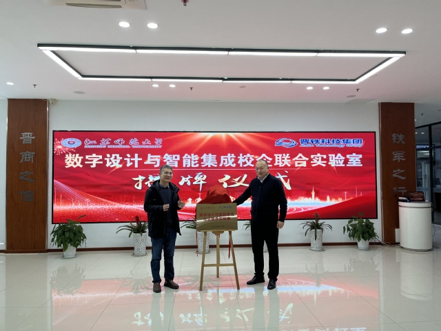 晋铁科技集团董事长李铎表示十分期待与江苏师大进行深入合作,通过与机电工程学院共建数字设计与智能集成校企联合实验室,打通成果转化“最后一公里”,让高校创新成果在企业落地生根、赋能产业升级。陆向宁院长与李铎董事长共同为数字设计与智能集成校企联合实验室揭牌。