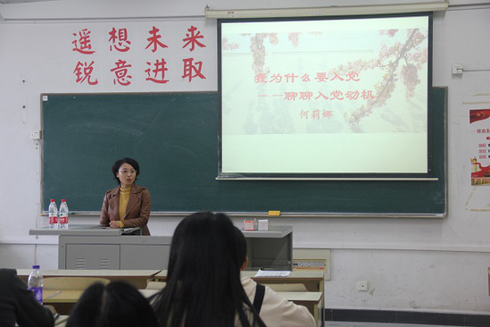 讲座伊始,何莉娜书记对入党动机做出了详细的阐述,她认为因性质、时间和来源的不同,每个人的动机形成的模型图也大不相同。其次,何书记对当代大学生的入党动机做出了解释,并结合精神型、情感型、功利型、从众型、被动型五大类型做了详细讲解。何书记指出我院同学应当端正自己的入党动机,只有端正入党动机,才可以做出正确的积极入党的行动,从而成为一名合格的党员。讲座中,何书记对如何端正入党动机进行了指导,她认为只有了解个人信仰、理想信念、未来发展等问题,正确把握和处理党员标准与做人标准、组织上入党和思想上入党、党组织培养与个人教育、入党动机与可行为实践、提出入党申请与接受组织考验这几个关系,才能够真正地端正入党动机。
